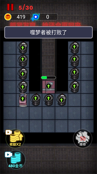 4、噬梦者攻击门的时候我们可以点击右下角的维修;