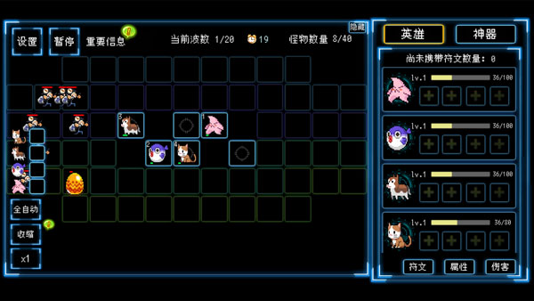 失败条件2:BOSS波,如果在限定时间内,没有击败所有BOSS,也会失败2.神器符文部分:在战斗过程中,击败蛋,可以获得选择神器符文的次数,获取的神器直接生效,符文则需要装在英雄身上