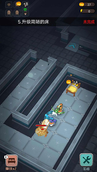 接着,假如你很幸运的升到每秒+8鬼都没来找你,那就开始攒钱,观察鬼在哪(攒钱是为了防备不时之需),直到攒到350左右就回去直接升到5级门,因为鬼是靠挠门升级,所以如果不攒钱直接升门就有可能会导致升到4或5级门时鬼突然来挠你门,那你就防御不了,可能会被鬼突然升级挠死