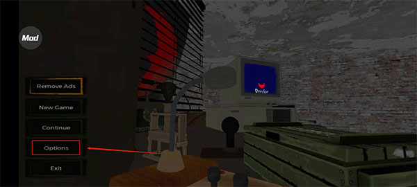 1、首先打开在本站下载好的游戏,进入到主页面时,点击倒数第二行的设置即可,称之为:optinos,也是这个游戏的设置选项。