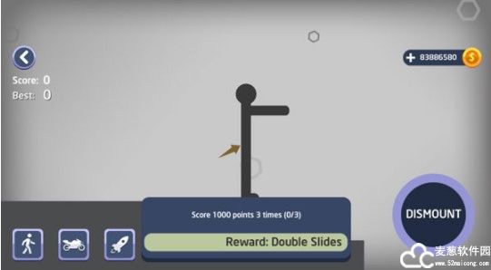 3、通过长按左下角DISMOUNT控制火柴人行动;