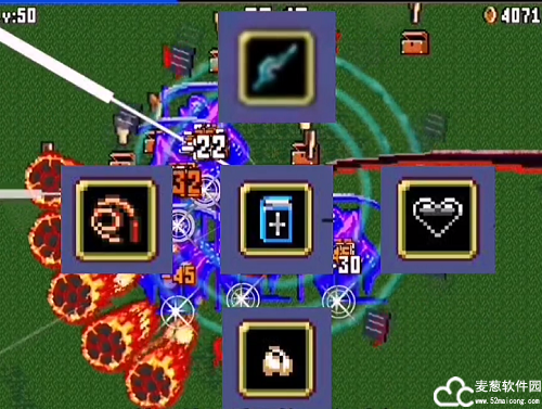 3、辅助武器:魔法杖+月桂,魔法杖在前中期特别好用,击退最靠近自己,的敌人提高了许多容错率,但后期要搭配其他强力武器;月桂的护盾功能对于没有升级属性的前期玩家来说很有用,经常可以在关键时刻保命。