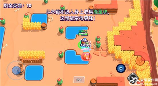 - 摧毁木箱或者击杀敌人获取能量块,可提升攻击力和生命值。