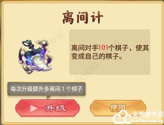 离间对手的棋子,使其变成自己的棋子,每次升级额外多离间一个棋子