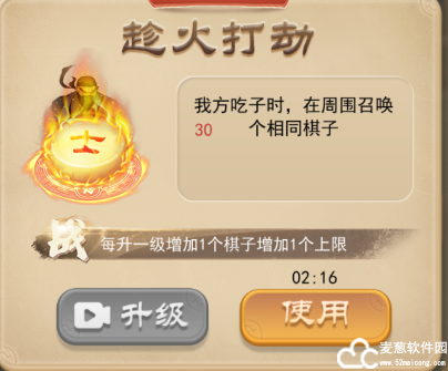 在我方吃掉对方的棋子后,会在周围召唤相同数量的棋子,初级是1个,满级可以召唤30个