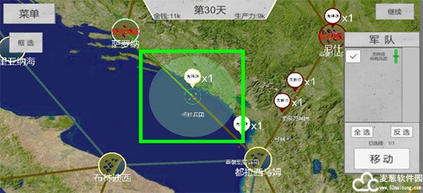 菜单开启敌友显示后,会显示盟友地区与敌对地区。胜利的条件即消灭所有敌对军队与占领所有敌对地区