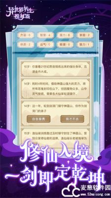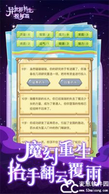 1、可以自由选择你的天赋,各种属性也是可以自由分配的,在异世界中活出你的精彩