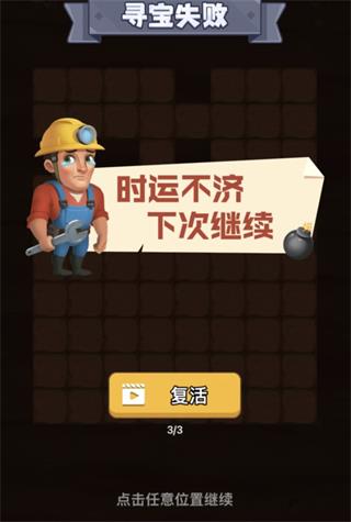 达到第三层时使用一次排雷工具,先把一颗雷排除,还有另外一颗雷就先不用管它,比较难碰到,各位玩家的运气一定是很好的,如果不幸踩中了那就选择复活,这样第三层通过了,达到第四层,层数越高奖励越丰厚哦