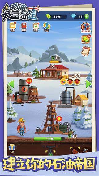 石油大富豪是一款非常有趣的养成经营类游戏,在这款游戏中,玩家将会成为一名石油商人,你的主要任务就是将自己的油田经过不断的发展,成为最大的石油帝国。为此,玩家需要提高石油的开采效率以及开采量,除了需要招聘大量的工人开采石油之外,玩家还需要购买更加先进的机器设备来进行开采,以此提升石油的开采效率,还要建立自己的科学研究室,让自己发掘更多且质量更好的石油。当然,玩家也可以将石油送进加工厂,生产成核潜艇、核弹、飞机等各种具备高附加价值的物件,然后将其高价出售,这样一趟下来,你收获得绝对比你想象得要更多,此外,除了经典的经营玩法之外,这款游戏还新增了热气球空投、期货、订单、图鉴、邮筒等等特色玩法,将会给玩家带来不一样的游戏体验,感兴趣的玩家赶紧来本站下载
