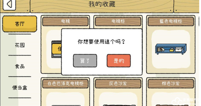 4、按左侧标签可切换分类,找到需要放置的新家具并点击,选择“是的”。