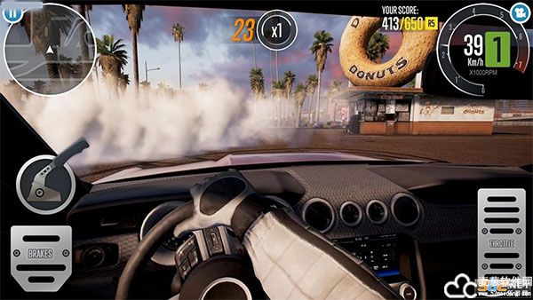 作为一款新派独特的3D赛车游戏,其游戏玩法还是一如既往具有难度,相比于普通赛车游戏更具操作挑战性,虽然界面上所布置的功能不多,左侧方向,右侧刹车、倒车和紧急刹车制动装置一览无遗,同时右上角还能自主切换视角,代入感超强。