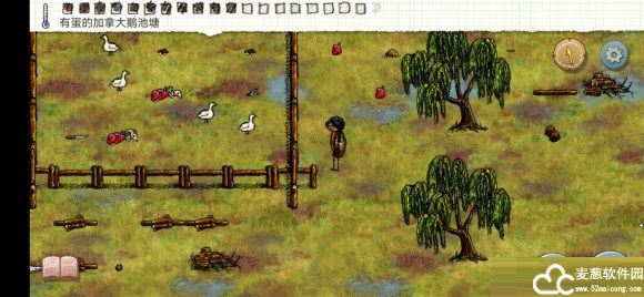 沼泽,暗绿色地面,有芦苇,粘土,池塘,没有前期食材,有掠食者野猪,移速快,体型小,在这里横冲直撞容易去世。池塘里有鹅,会下蛋。尽管危险,但沼泽是一个很重要的地形,家选址附近必须有沼泽。
