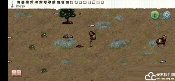 屏幕右下方是温暖指示,箭头指示当前的体温程度,中点代表佳温度。太热或太冷本身并不危险,但饥饿度下降速度将显著提升,影响体温的周遭环境因素有很多,包括服装、火堆、所处环境和建筑物。所以尽量穿戴好衣物,并根据体温适当增减,部族安家时也可以尽量寻觅有沙漠相接的地块,将极大的缓解食物需求。