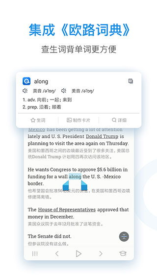 4、划词搜索:与《欧路词典》无缝集成,长按查词,即指即译;