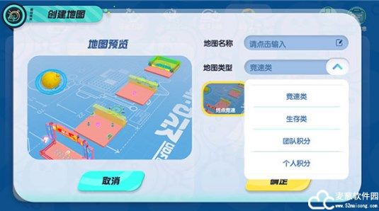 1、地图类型:分类下可以选择各种模板,包含竞速赛、生存赛、积分赛等模式,操作简单,不怕无从下手!