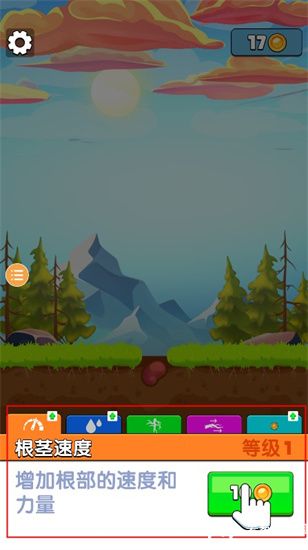 4、赚取到的金币可以用于升级,让根茎运动更远距离哦。
