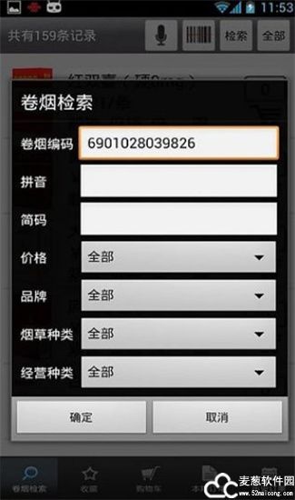 2、这里会出现卷烟编码,然后就可以点击搜索啦;