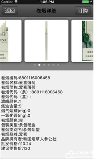 3、搜索成功后会进入到卷烟详情里面,可以看到各种信息;