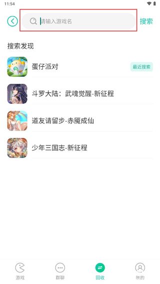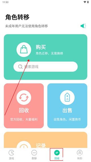 1、打开软件进入回收界面,点击购买版块中的搜索游戏