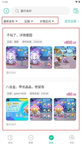 3、你可以通过上方的最新发布,区服和价格区间来筛选自己需要的,找到想要的之后点击进入购买页面