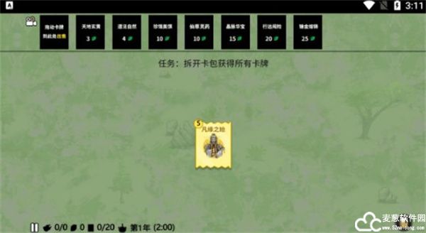 2、打开卡包会有五张牌,很多了,并且其中必定包括一张凡人,也就是我们的角色,以它为基础培养;