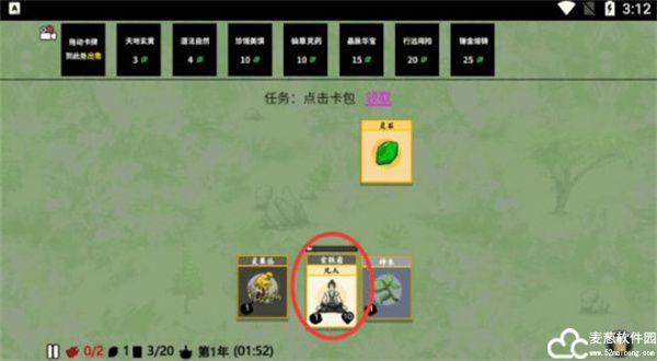 1、云游仙人是一张功能卡牌,作用是可以用来获取婴儿。将凡人和云游仙人放到极乐洞府之中,便可以获得灵心婴儿,长大之后自带灵心