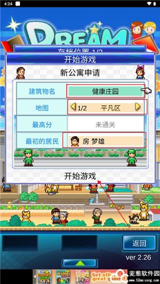 2、在新公寓申请界面中,设置好公寓的名字,地图和租客,设置好之后点击开始游戏