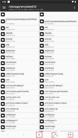 3、在界面底部的功能栏中带来了三种功能,分别是增加文件,刷新和返回上一级