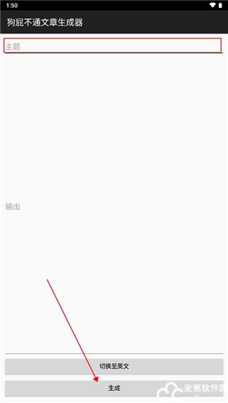 在狗屁不通文章生成器app中,你只需要输入标题,软件就会自动生成文章。