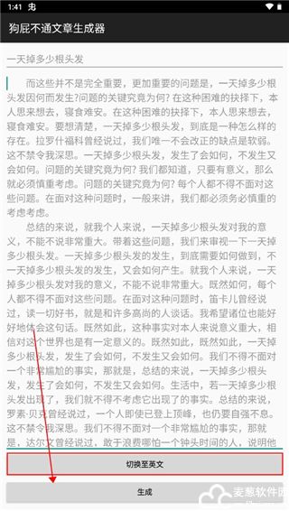 2、软件还可以将文章切换成英文,点击相仿的转换成英文,在点击生成即可