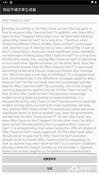 3、需要注意的是,该软件生成的文章看上去很有意义,但是经不得推敲,娱乐就好