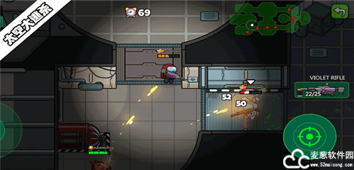 太空大逃杀中文版是一款非常有趣的射击竞技类游戏,以未来为游戏的背景,一艘开往遥远星系的飞船因为遭遇了各种危机导致飞船的能源即将耗尽,而船员们也受到了有心人的影响而发生暴乱,作为玩家的你将会扮演飞船上的一名船员,为了生存下去,你需要拿起武器战斗。游戏中为玩家带来了各种各样的枪械,手枪,霞弹枪,冲锋枪等,每一种武器的伤害都不一样,在进行备战时一定要装上伤害最高的武器,不然很难击杀其他玩家,在太空大逃杀中获取武器的方式与其他的设计游戏不同,这里采用了的是合成的方式,由两把低级的枪合成更高级的枪,通过不断的将相同等级的枪械进行合成,以打造最强的枪械,这样才能够在接下来的战斗中更轻松的消灭敌人。
