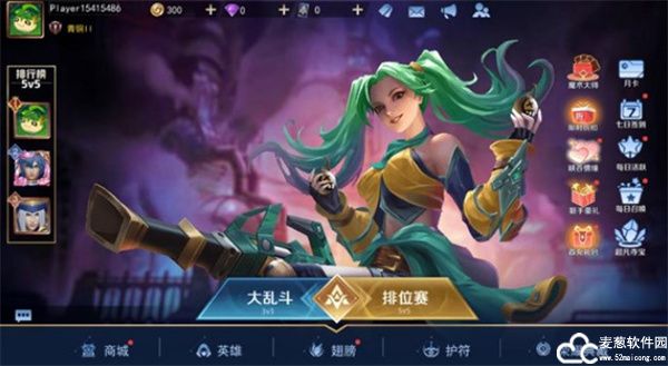 1、这是游戏界面,有排位和大乱斗两种模式,和其他moba的玩法差不多;