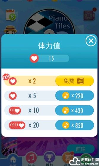 4、开启对局需要体力值,每天会自动恢复,如果还想玩只能花费音符购买或者看广告获取哦。