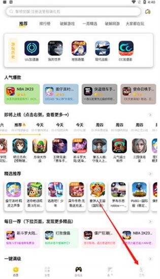 3、每天会精选多款热游、新游推送到主页,让大家了解时下最新游戏,及时试玩
