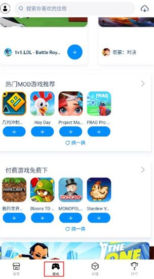 2、下方有着菜单选项,可以切换到不同功能界面,比如这里的游戏,内容更齐全;