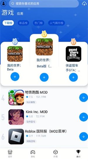 4、排行榜功能是小编最喜欢的,根据排行更容易找到让人喜欢的游戏哦。