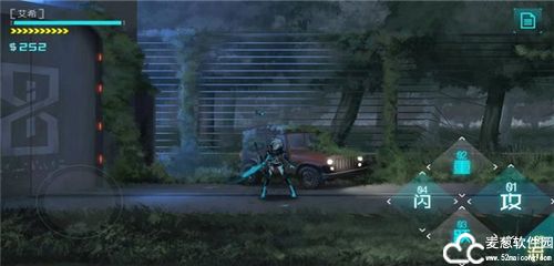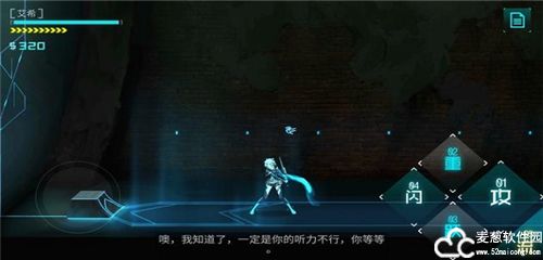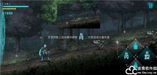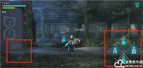 2、通过左侧的虚拟遥杆来控制角色,右边是一些动作按键,闪代表闪避,跃代表跳跃,重视重击,攻是普通攻击