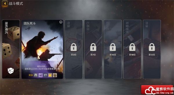 2、战斗模式提供很多中,但需要慢慢解锁,前面的模式更简单一些,目前只能选第一个团队死斗哦;