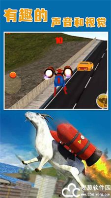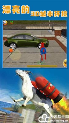 山羊模拟器正版是一款以山羊为主题的休闲娱乐游戏,采用了3D游戏引擎打造,拥有高清精致的游戏画面和丰富多样的游戏场景,在这里,你将会扮演一只山羊,但与普通的山羊不同,这只山羊有着极强的破坏力,能够轻松摧毁任何物体。在这里没有明确的目标或任务,你可以随心所欲地做任何事情,如摧毁建筑,破坏城市,消灭人类等,没有任何的限制,所有的一切全凭你的想法。在山羊模拟器中,你可以用角撞击物体、吐出黏液、跳跃和飞行等多种方式来与环境互动,还可以收集隐藏在地图中的物品来解锁隐藏成就,并解锁新的能力和道具。此外,游戏的操作方式非常的简单,只有简单的移动摇杆和撞击跳跃两个按键,让所有的玩家可以迅速上手游戏,体验不一样的山羊冒险之旅。