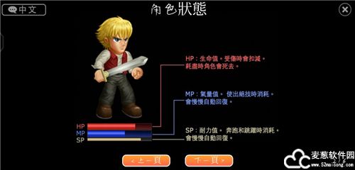 2、角色状态,在角色的脚下有三根颜色不同的能量条,分别代表着生命值,气量值和耐力值