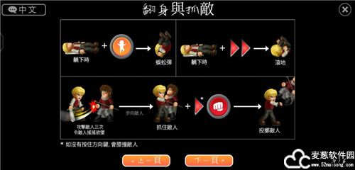 4、翻身与抓敌,攻击敌人三下可以让敌人处于破防状态,点击抓住按键就可以抓住敌人