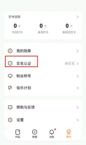 2、不过创建新书之前还需要对您的身份进行验证,在我的中进行实名;