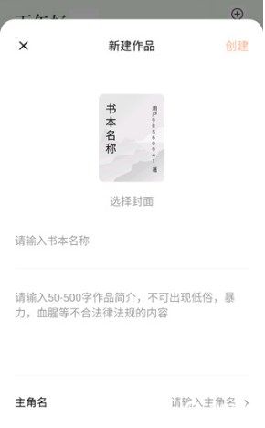 3、作品输入名称和简洁就好,然后还要有一章才能发布哦。