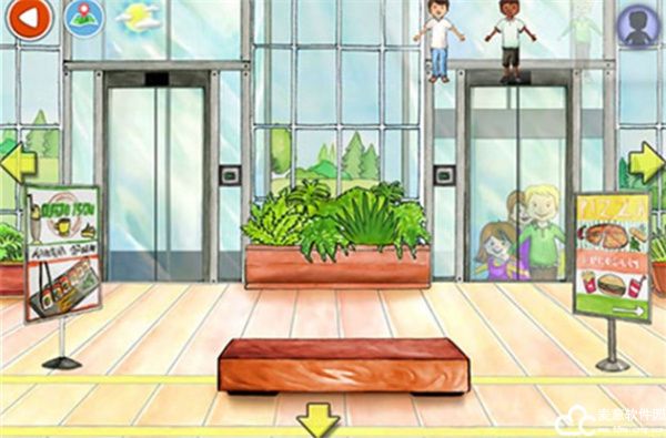 1、一开始我们会出现在家中,如果要出门就得坐电梯出去,点击电梯按键,等待一会;