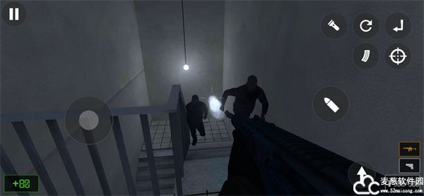 2、战斗界面,第一人称视角,左下角显示血量,左移动,右攻击;
