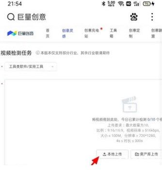 3、然后选择上传自己的作品,本地和资源库都可以;