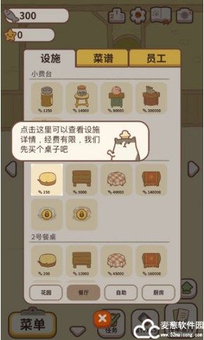 3、商店中可以购买桌椅、菜谱等,但需要消耗小鱼干;