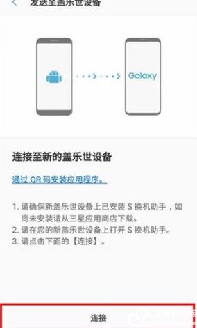 利用应用,可以在 Galaxy设备间轻松传输数据。将两个设备互相靠近并运行该应用程序。然后根据设备的品牌或系统分别进行选择,再[连接]。这样就可以将保存在旧Galaxy 设备上的个人数据发送到与之连接的新Galaxy设备上。