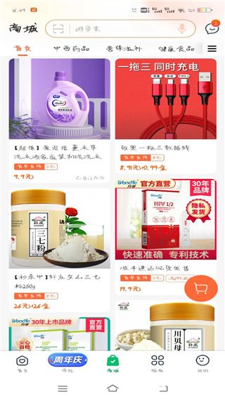 3、在商城页面中,这里有着大量的生活用品,洗衣液,数据线等,还有各种各样的营养品,全部都是正品,有品牌保障